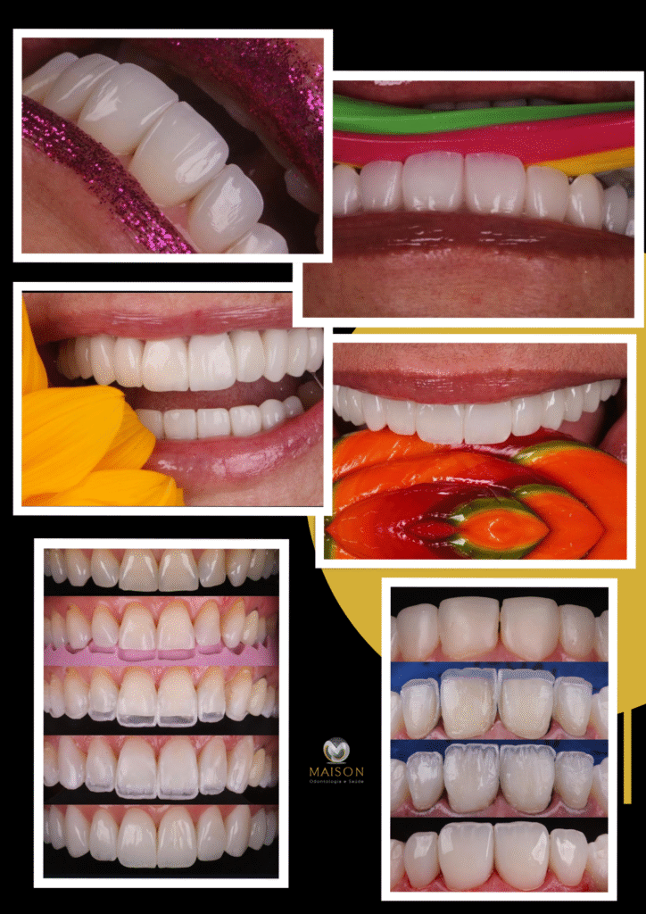Indicadas para corrigir dentes curtos, desgastados, espaçados ou com formato assimétrico, melhorando a harmonia do sorriso.